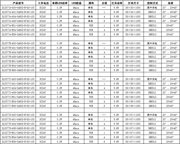 >> 可選配光角度(本畫冊統一使用50%峰值光強角度):20°、30°、45°、20*45°、120°(無透鏡)、