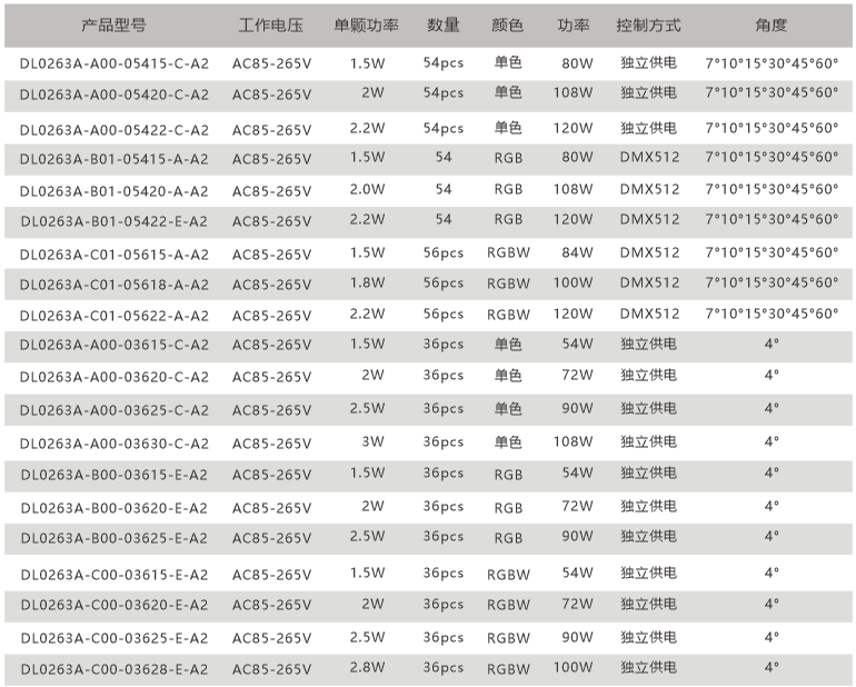 ◆ 光束角配光可選:4° 7°10°15°30°45°60°