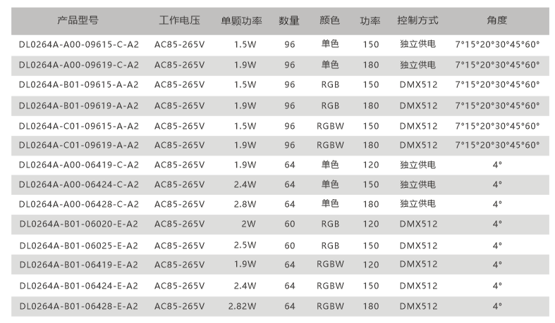 ◆ 光束角配光可選:4° 7°10°15°30°45°60°